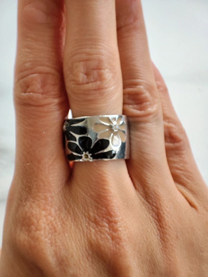 Bague fantaisie argentée avec motifs fleurs. Taille S. #ledressdejena_bijoux