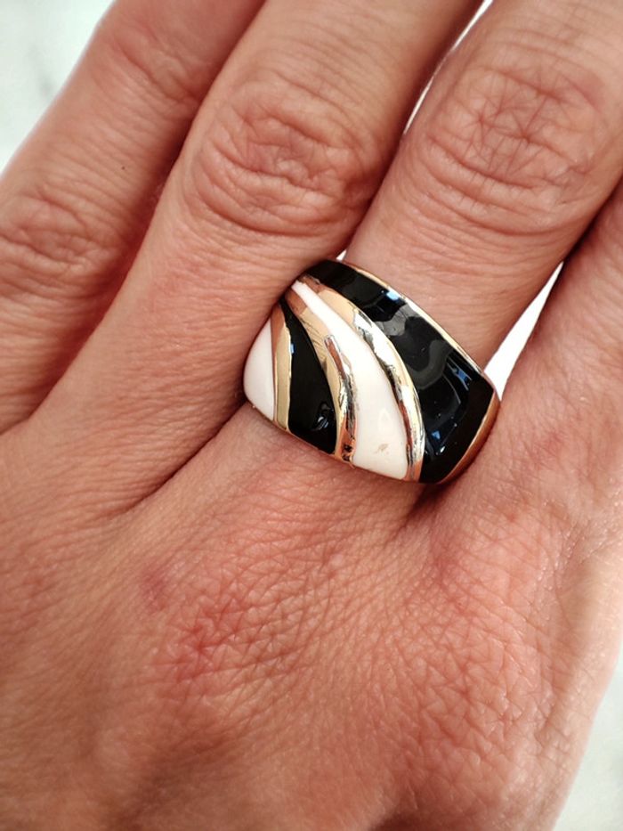 Bague dorée coloris noir et blanc, taille S. #ledressdejena_bijoux