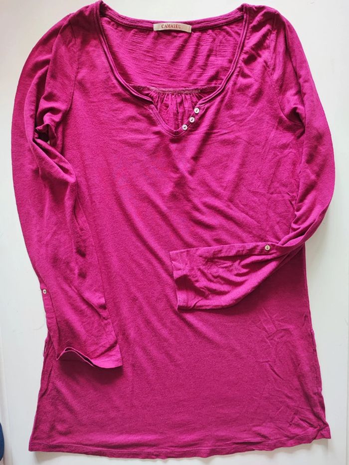 Tunique longue rose fushia marque Camaïeu taille 1. Manches longues pouvant se retrousser (bouton). #ledressdejena_tailleS #ledressdejena_taille36