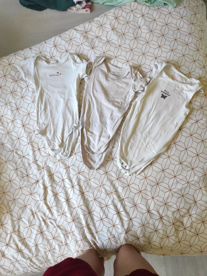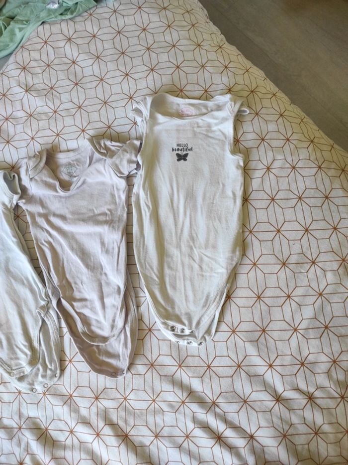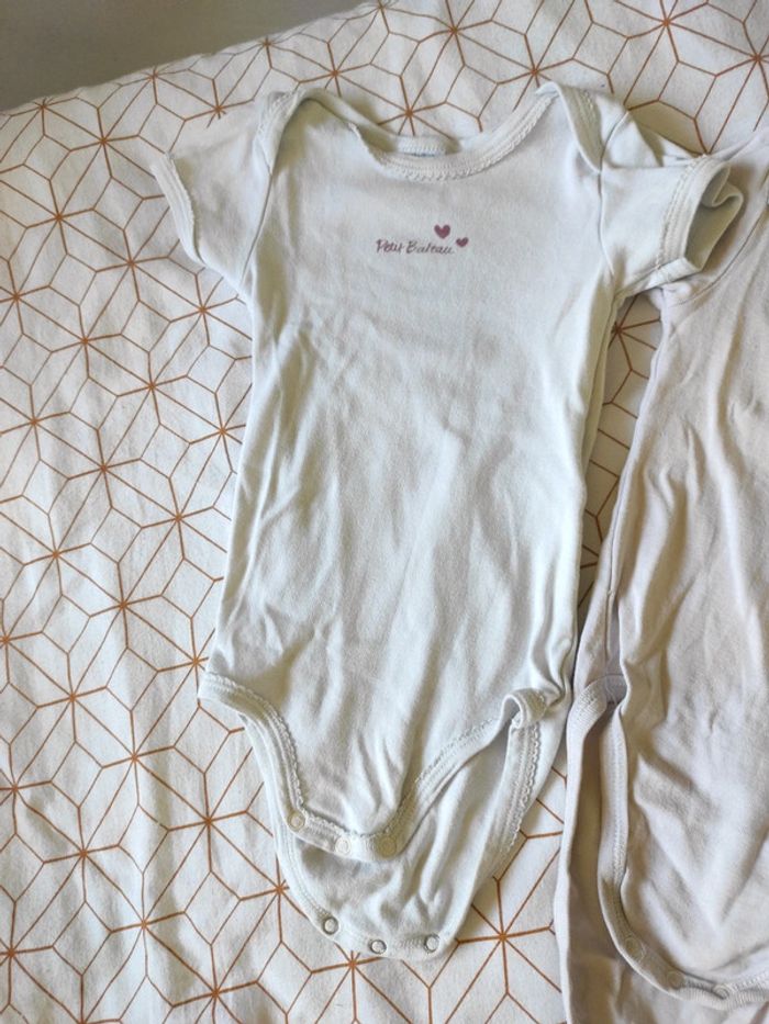 Lot de 3 bodys été 🧸un body petit bateau 18 mois blanc à dentelle 🧸un body Tex 23 mois rose poudré très léger 🧸un body 18-23 mois sans manches action blanc #bodybébé #bodybebe18mois #flodu85_18mois