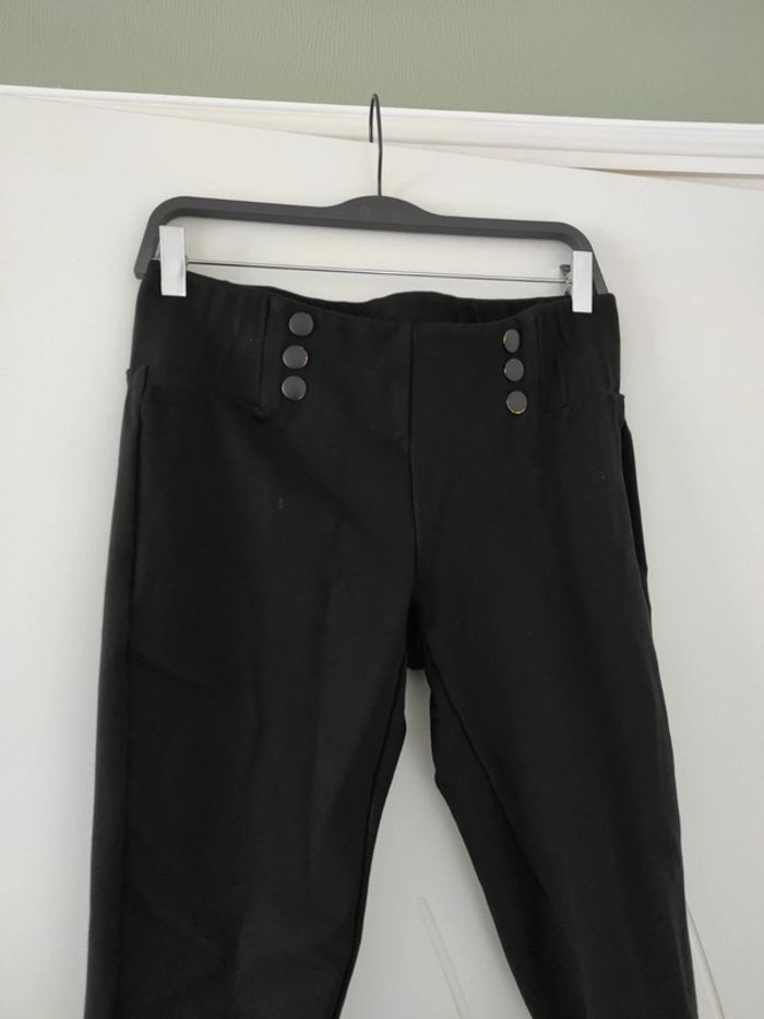 Pantalon city noir très élastique pour un 38/40. Bon état car voir 3/4 légère petite tâche blanche et dernière photo tâche marron #flodu85_38femme #pantalonfemme38