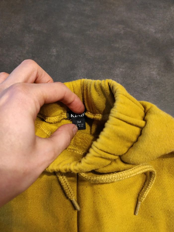 Couleur moutarde. Quelques bouloches liés à l'usure. #jogging3moisgarcon #3moisgarcon