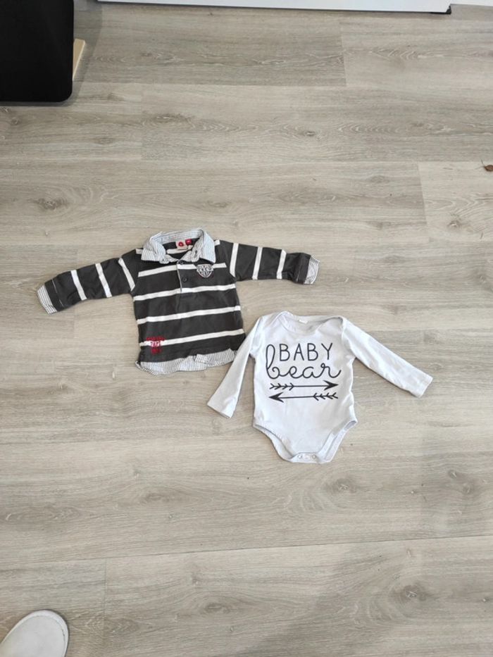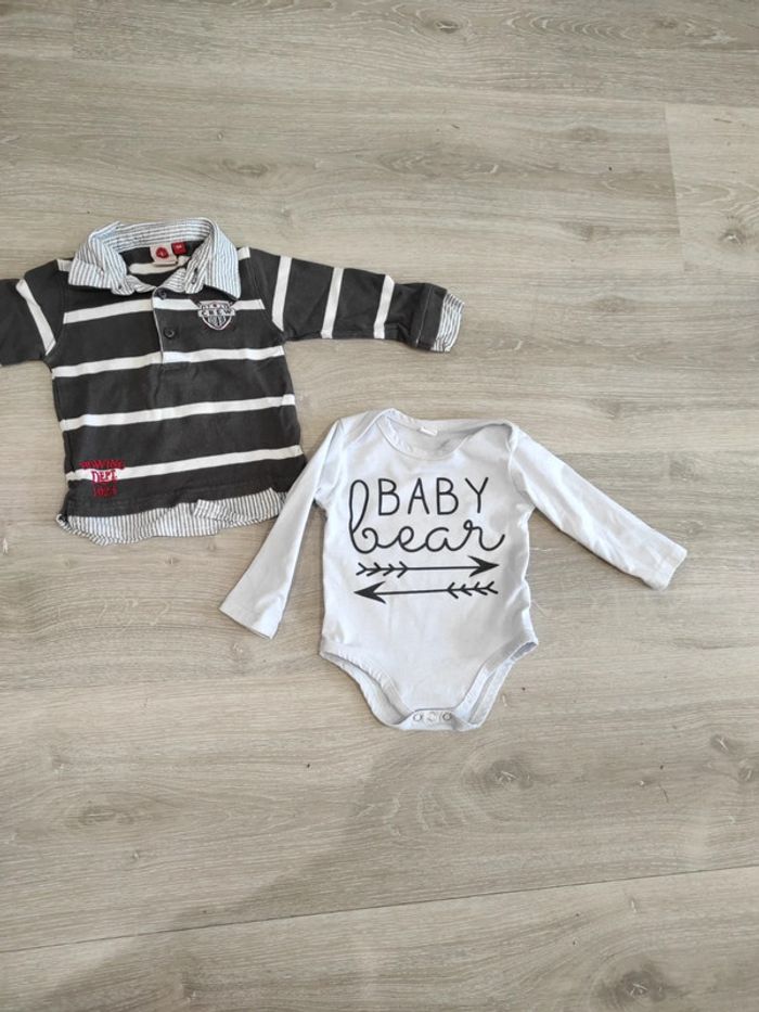 Lot de deux articles 9 mois : Un body manches longues et un polo manches longues. #bodybebe9mois #polobebegarçon