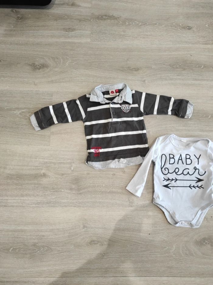 Lot un body manches longues et polo 9 mois - photo numéro 1