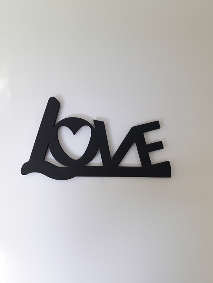 Cet élément de décoration murale 'LOVE' apporte une touche d'élégance et de modernité à tout espace. Fabriquée avec des lettres capitales noires au design stylisé, elle intègre un cœur artistique à la place du 'O', ajoutant une dimension créative. Sa finition lisse et sa texture douce au toucher en font une pièce aussi agréable à regarder qu'à toucher. Montée sur un mur blanc, elle ressort magnifiquement, capturant l'attention et embellissant votre intérieur avec simplicité et raffinement. Bois: Mdf 3mm d'épaisseur Taille: 112mm/200mm