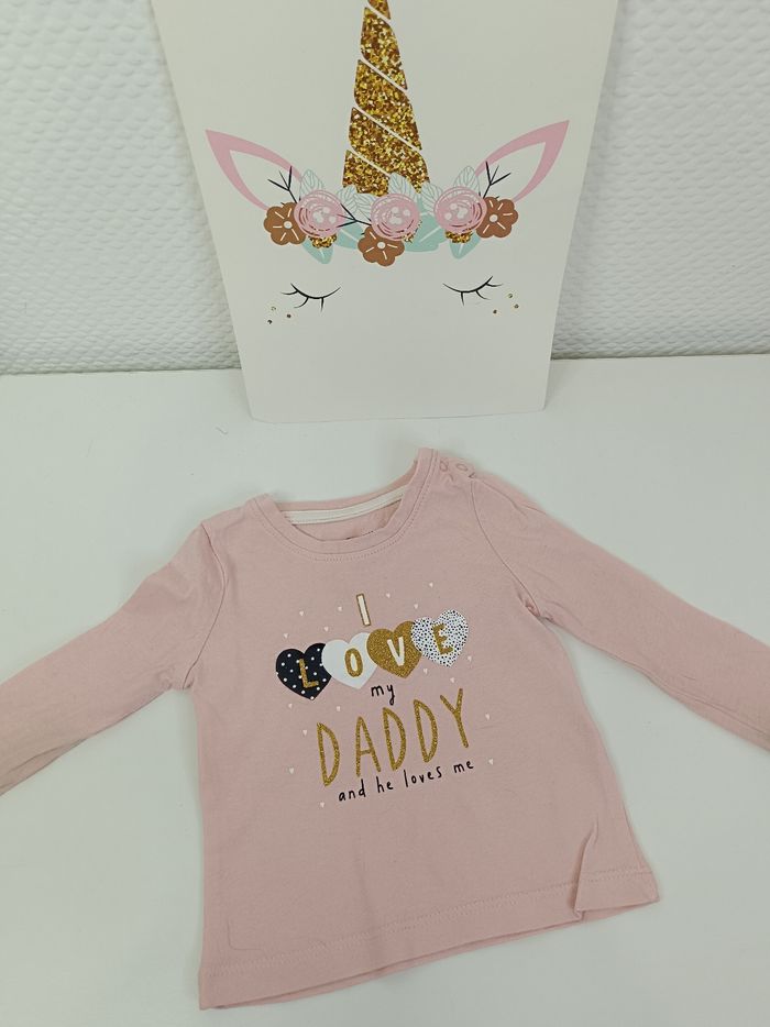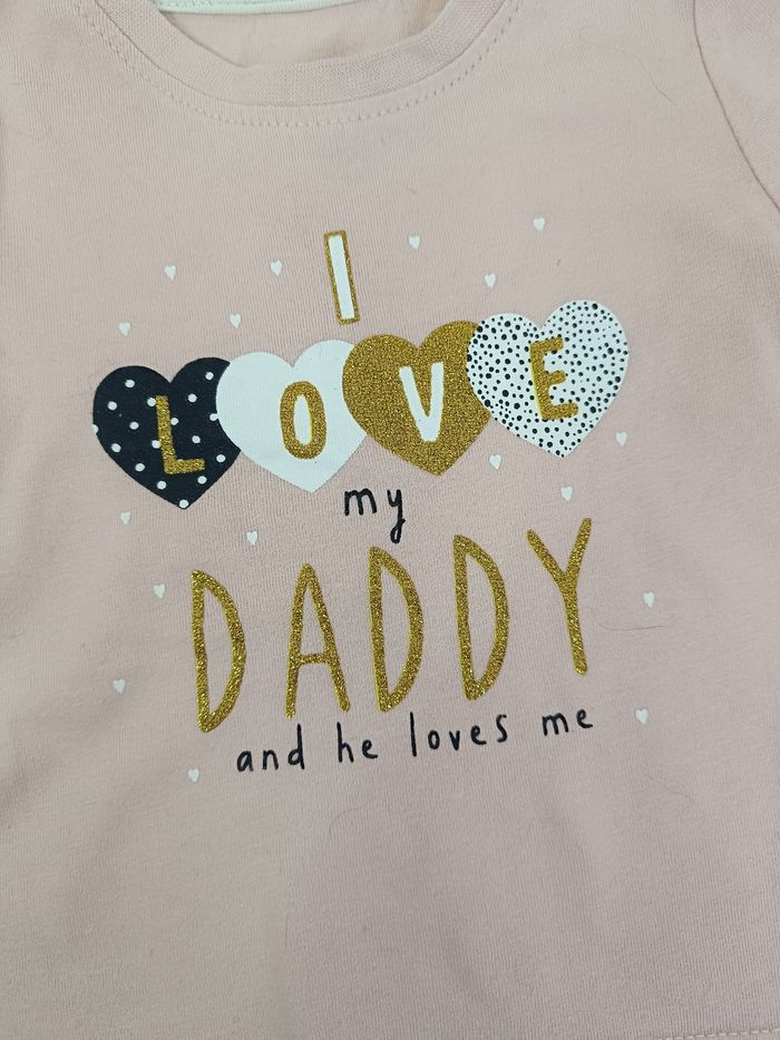Tee shirt rose daddy Traces aux manches Primark taille 3-6 mois