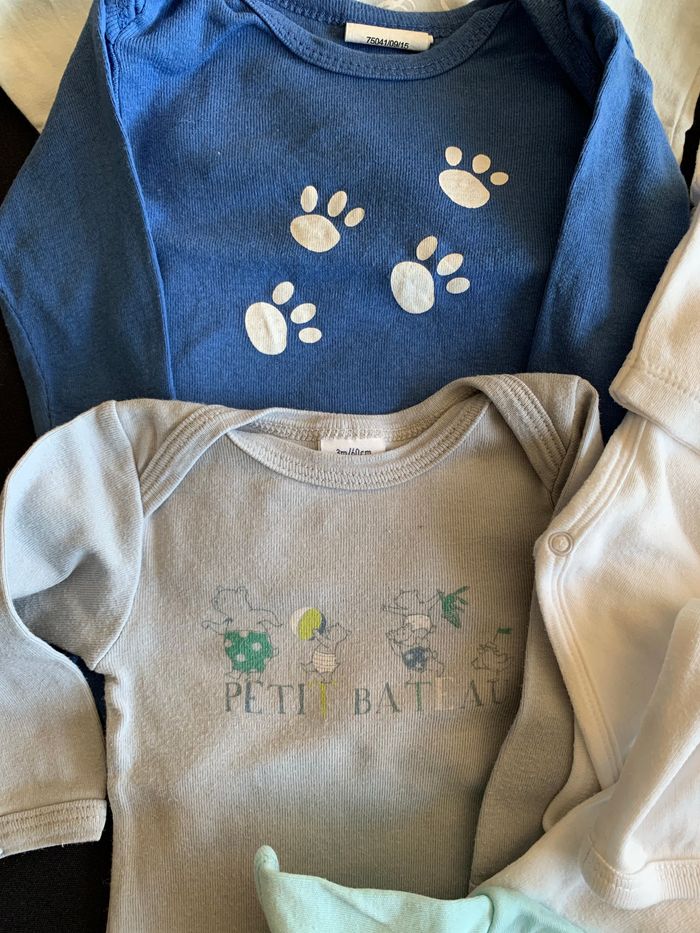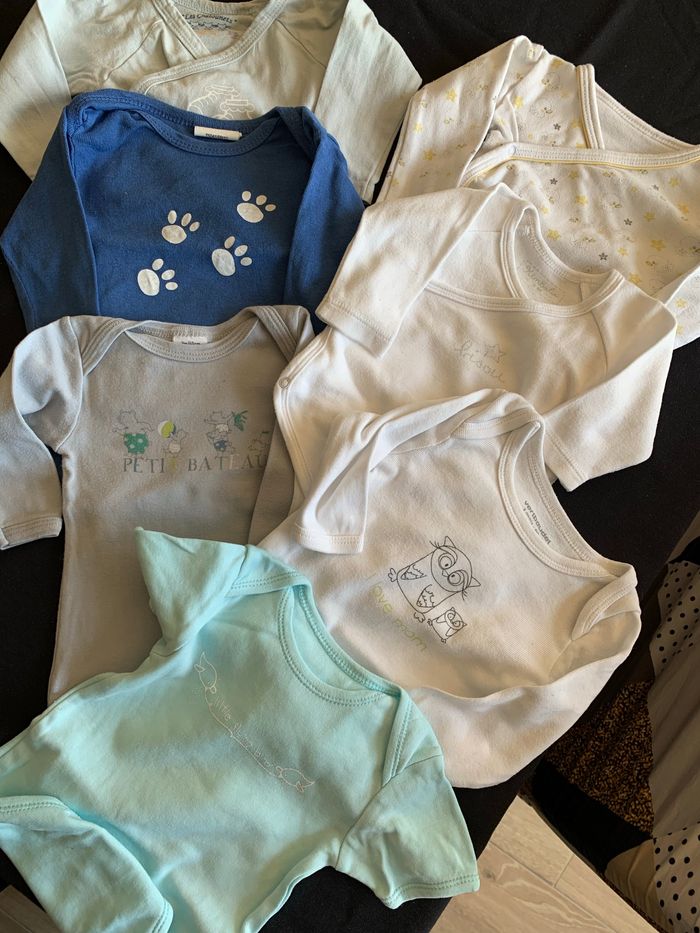 * En bon et en trĂšs bon Ă©tat selon les modĂšles * 6 bodies manches longues + 1 body manches courtes * Diverses marques : Petit Bateau, Les chatounets, Kimbaloo, .. * Pas de tĂąches, boutons pression ok ⚠ 1 body avec un petit trou fait lorsque l’étiquette a Ă©tĂ© coupĂ©e mais sinon le body est en parfait Ă©tat - voir photo