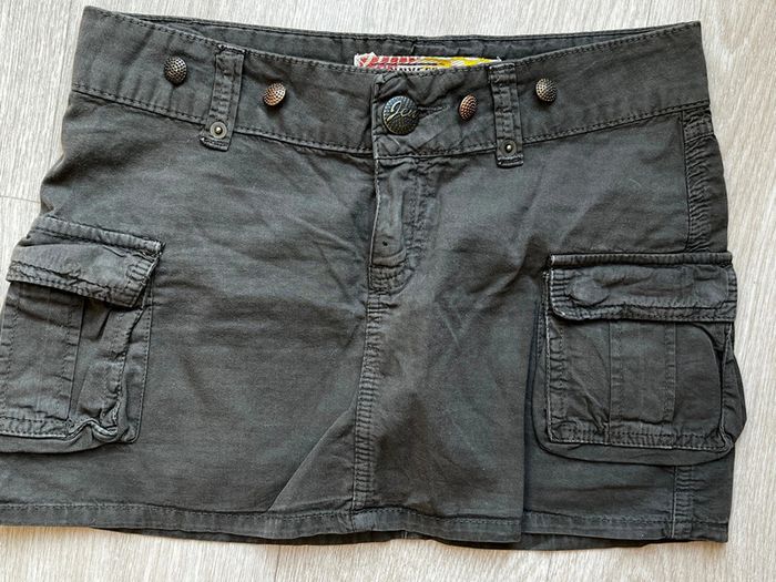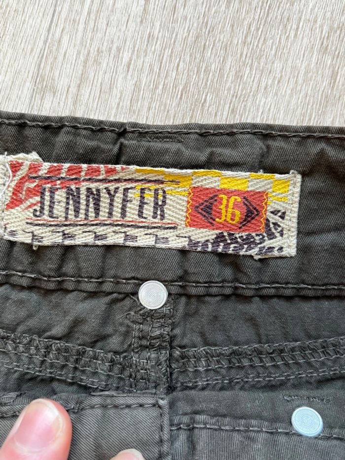 Mini jupe Jennyfer Taille 36 2 poches sur le devant et 2 poches à l'arrière 1 bouton et 1 fermeture 6 boutons décoratifs : 4 à l'avant et 2 à l'arrière 5 passants 100% coton