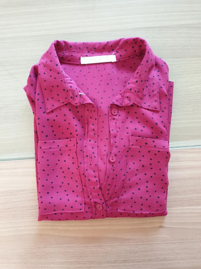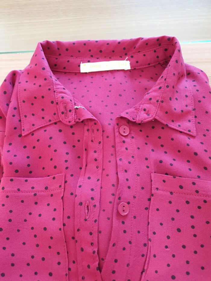 Chemise bordeaux à pois noirs marque Gemo- Taille 12 ans Manches longues et 2 poches sur le devant
