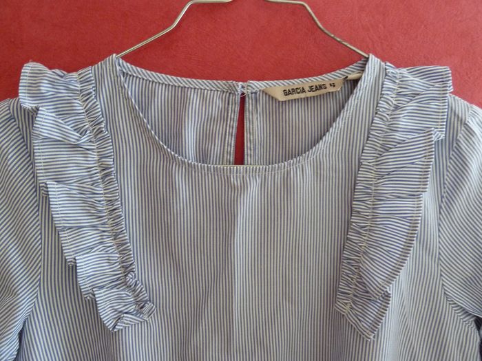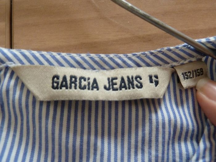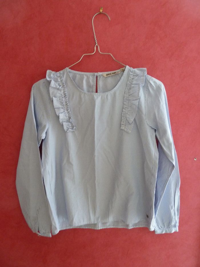 Chemise bleu ciel rayée avec bouton aux manches de chez Garcia jeans. Taille 13ans