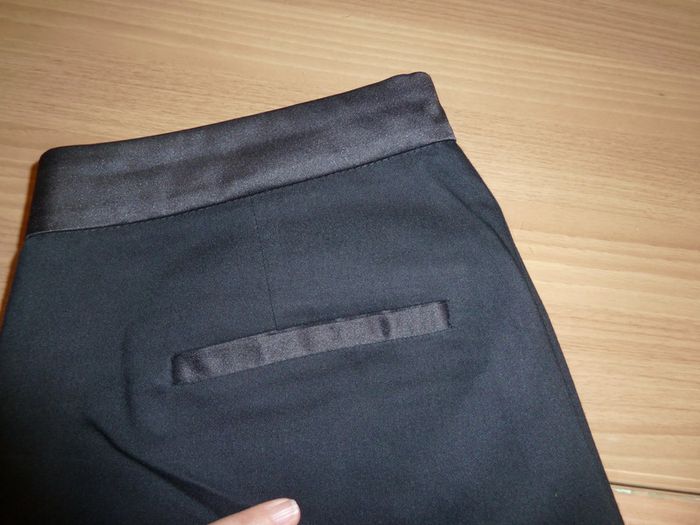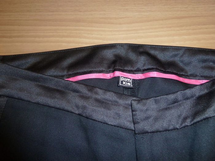 Pantalon noir Pimkie taille 36 avec sur chaque côté une bande noire brillante ainsi qu'à la ceinture.2 poches sur le devant et 2 fausses poches arrière.