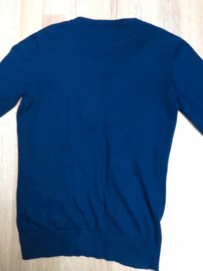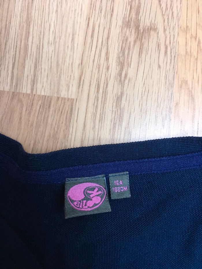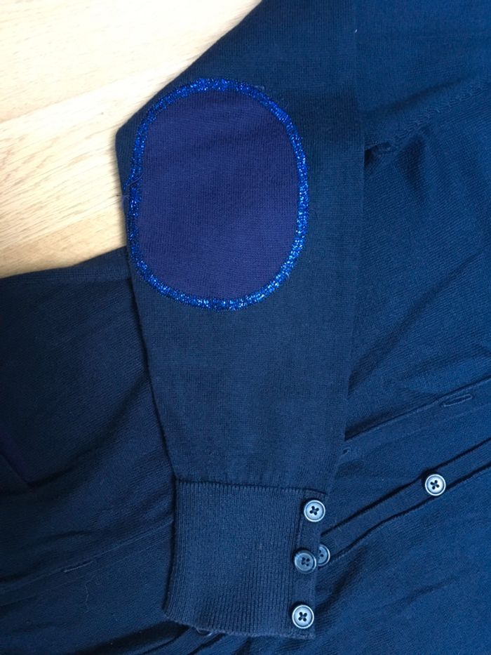 gilets bleu marine en bon état avec 7boutons au centre et 3 boutons cousus au manche pièce cousu avec du fil pailleté bleu rond mauve (voir photo) #azelia20vetementsfille16ans