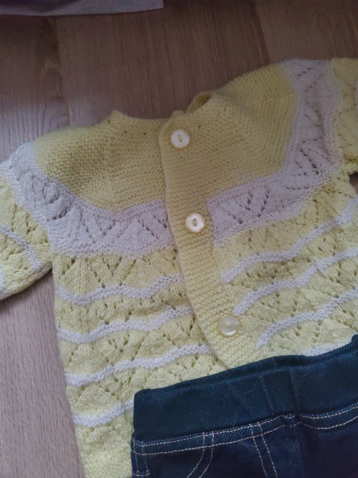 Ensemble fille gilet jaune blanc fait main +legging jean taille 3 mois #bijoux76210fille3mois