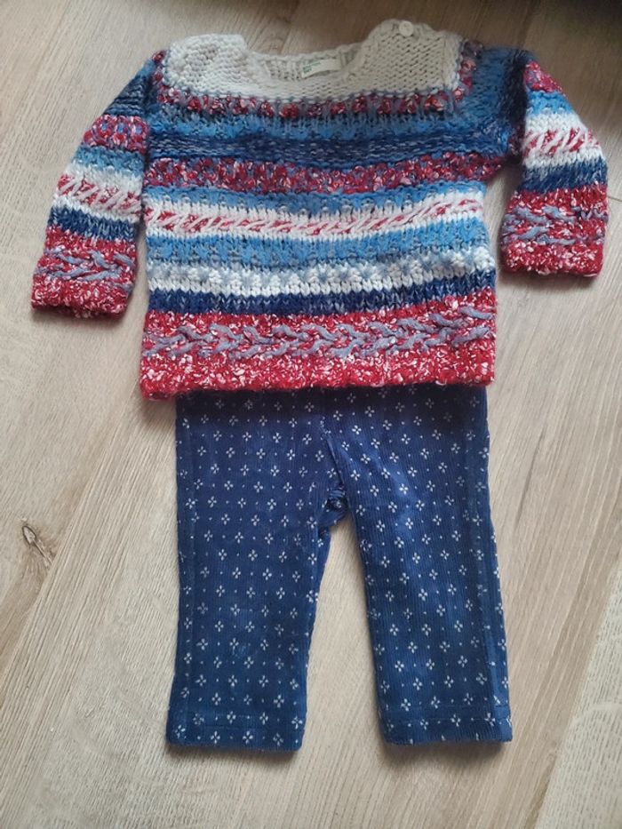 🌴 Ensemble benetton pantalon + pull chaud taille 3 mois - photo numéro 1