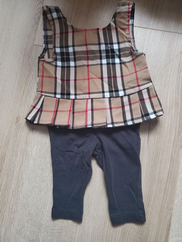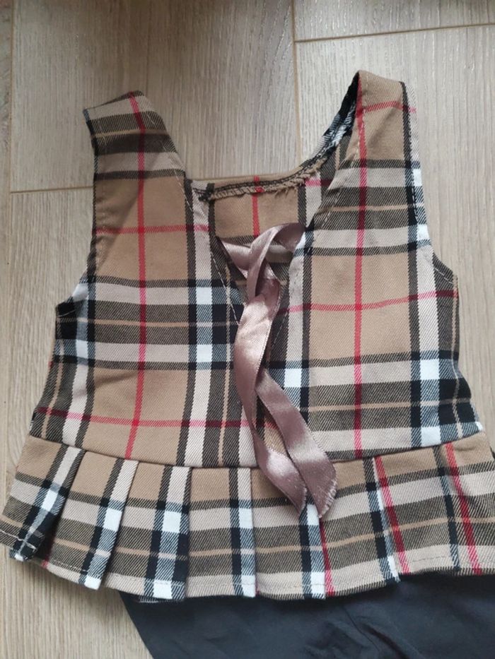 Ensemble 2 pièces blouse à carreaux noeud satin au dos + legging noir taille 3 mois #bijoux76210fille3mois