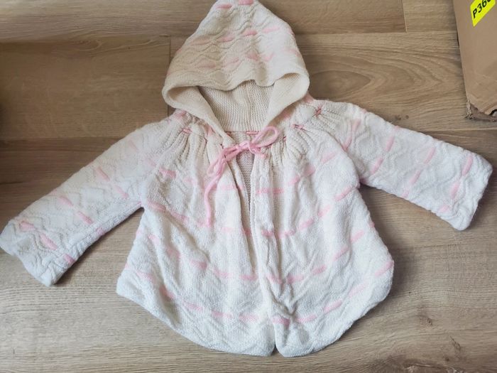 Manteau rose et blanc à capuche fait main (doublé ) va pour un bébé de 3mois et + #bijoux76210fille3mois