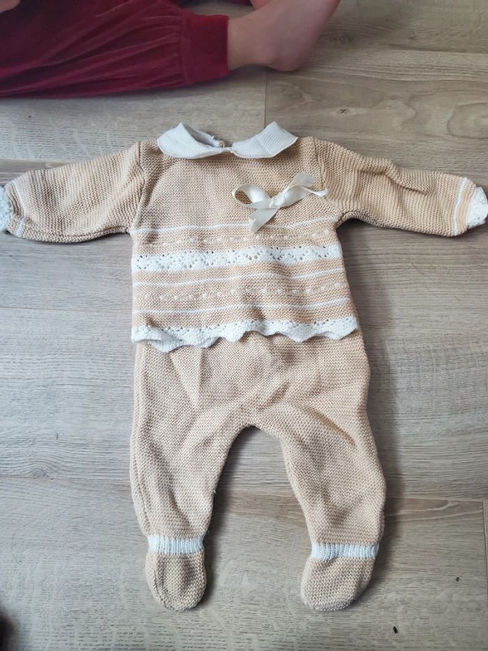 Magnifique ensemble beige et blanc (pas commun) pour petite fille taille 3 mois #bijoux76210fille3mois