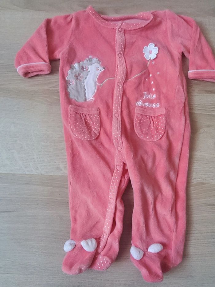 Pyjama velours rose avec hérisson taille 3 mois gemo #bijoux76210fille3mois
