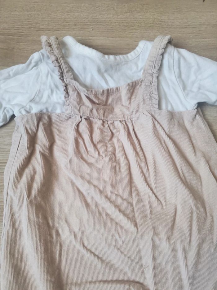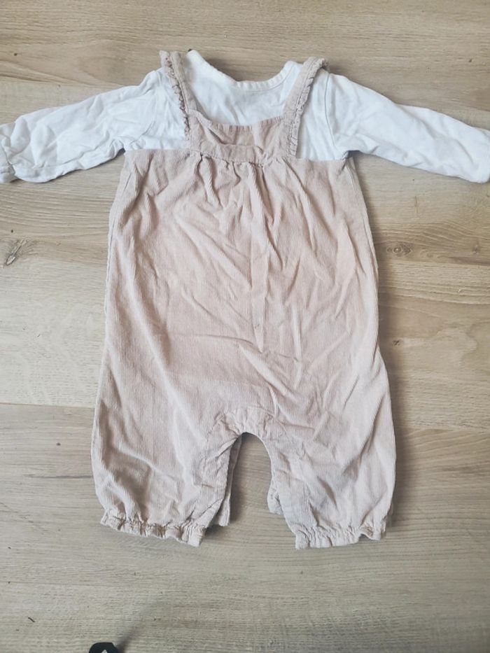Ensemble tshirt manche longue blanc + salopette combinaison beige façon velours taille 3 mois #bijoux76210fille3mois