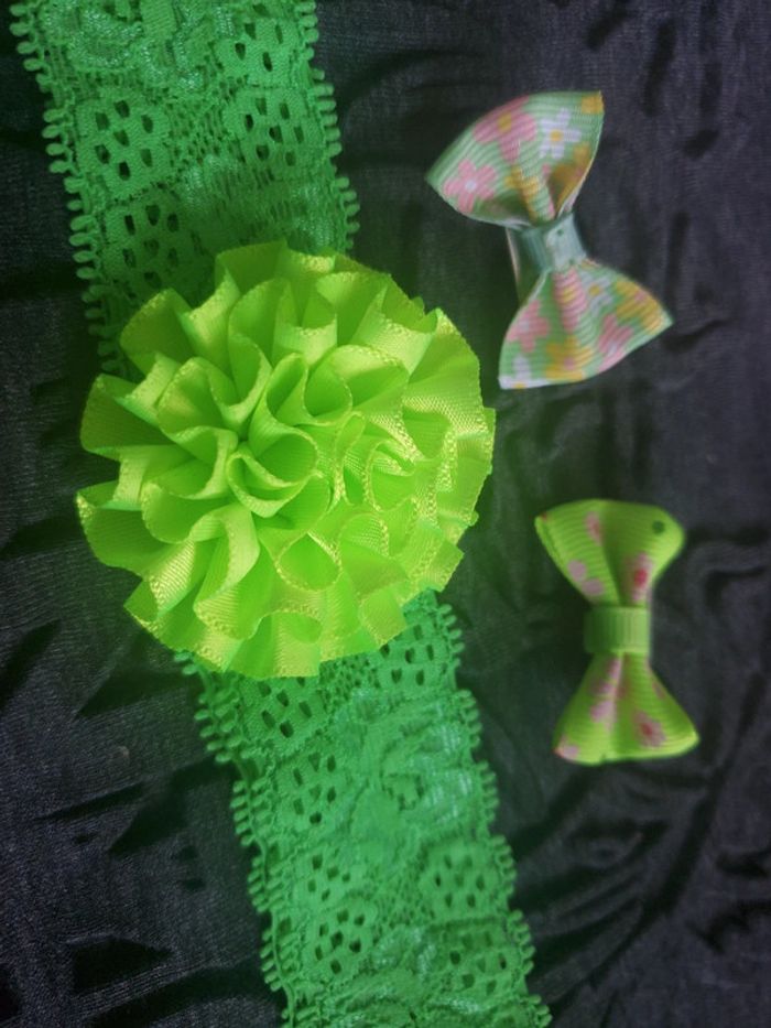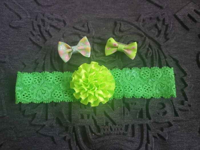 🌴  Lot de 2 barettes noeud et 1 bandeau dentelle vert