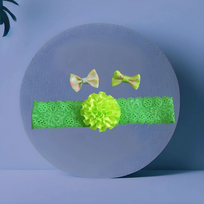 🌴 Lot de 2 barettes noeud et 1 bandeau dentelle vert