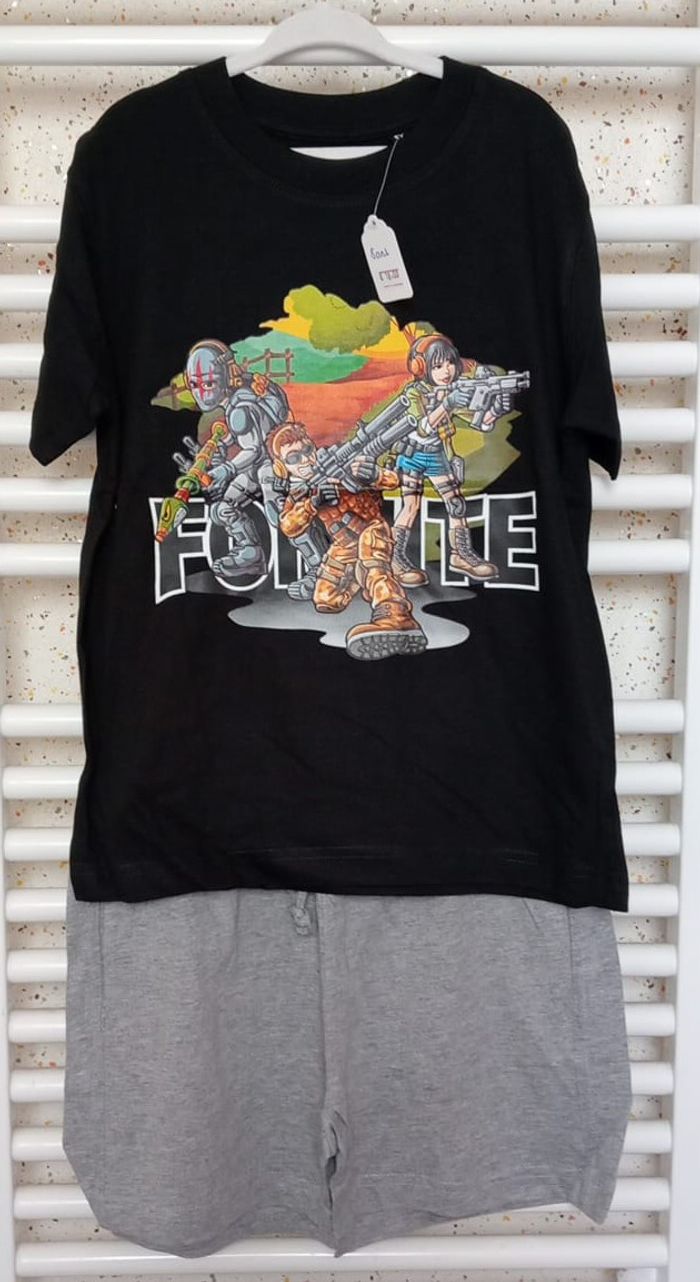 Ensemble Tee shirt manche courte + Short Taille 8 ans Short gris Tee shirt manche courte noir imprimé multicolore Fornite Jamais porté #sycaro #sycaro8ans #taille8ans #sycaroensemble #sycaroshort #sycaroteeshirt #ensemble #short #teeshirt #noir #gris #multicolore #fornite #manchecourte A8657