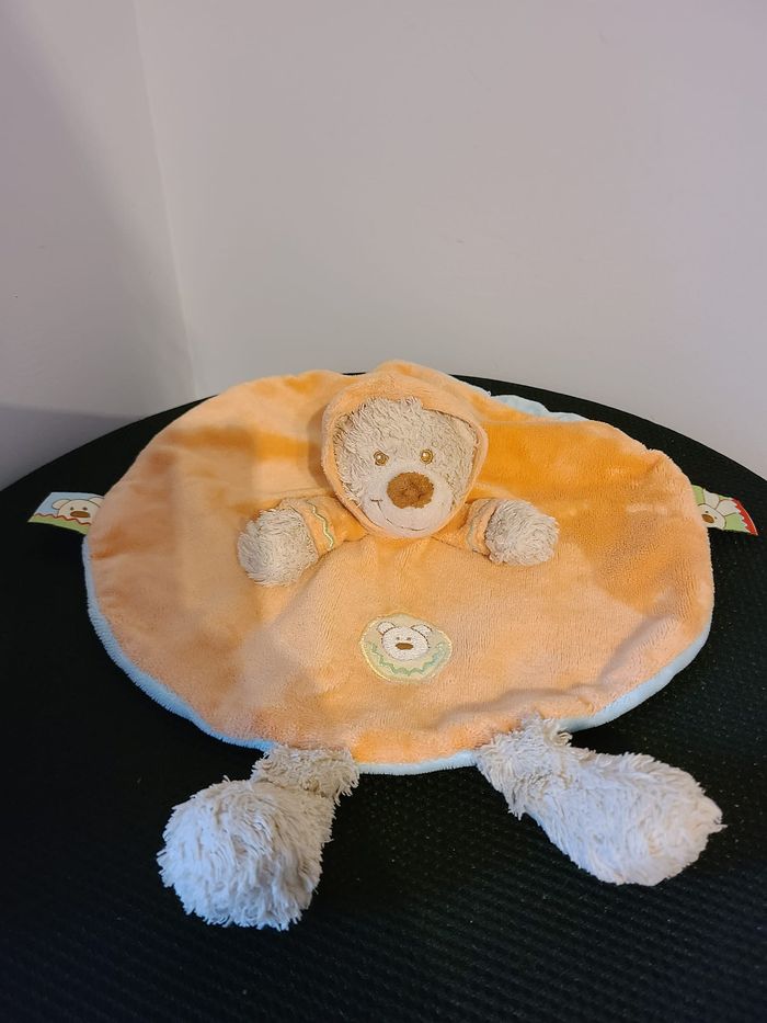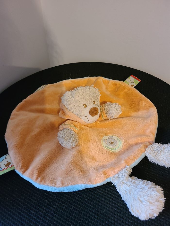 DOUDOU PLAT ROND OURS ORANGE BLEU NICOTOY 128