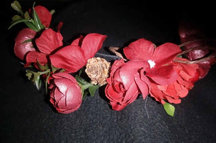 Très beau serre-tête avec des fleurs rouges dessus jamais porté