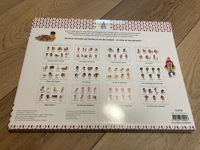 Ce livre, composé de 12 affiches, suit la pédagogie Montessori et va accompagner l'enfant dans sa découverte de l'école. Grâce à des petits rituels faciles à mémoriser, il parviendra à comprendre et mémoriser les situations importantes dans le quotidien de l'école et trouver des repères dans ce nouvel univers. Un livre-chevalet pour le bien-être des enfants… et celui des parents ! Neuf car en double N’hésitez pas à regarder l’ensemble du dressing, je fais des prix sur les lots 🍀