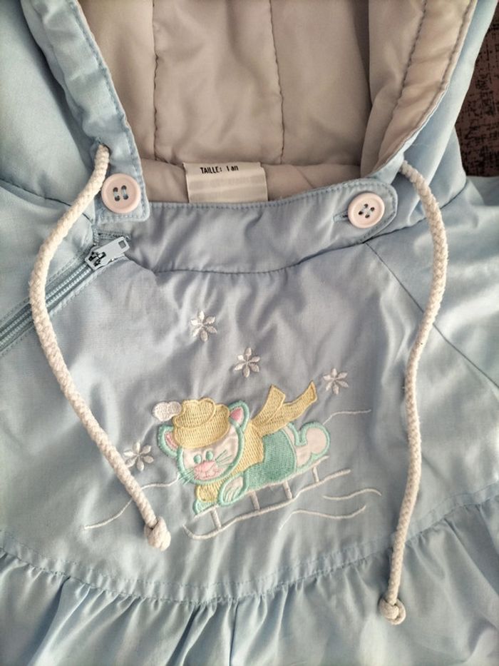 Combinaison chaude pour extérieur. Couleur bleu clair. Taille 1 an. Très bon état.