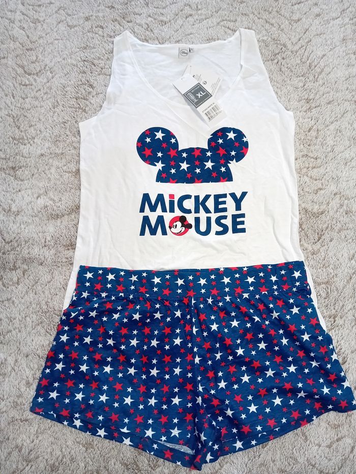 Pyjama 2 pièces Debardeur + short Disney Mickey Taille XL 100% coton Neuf avec étiquette