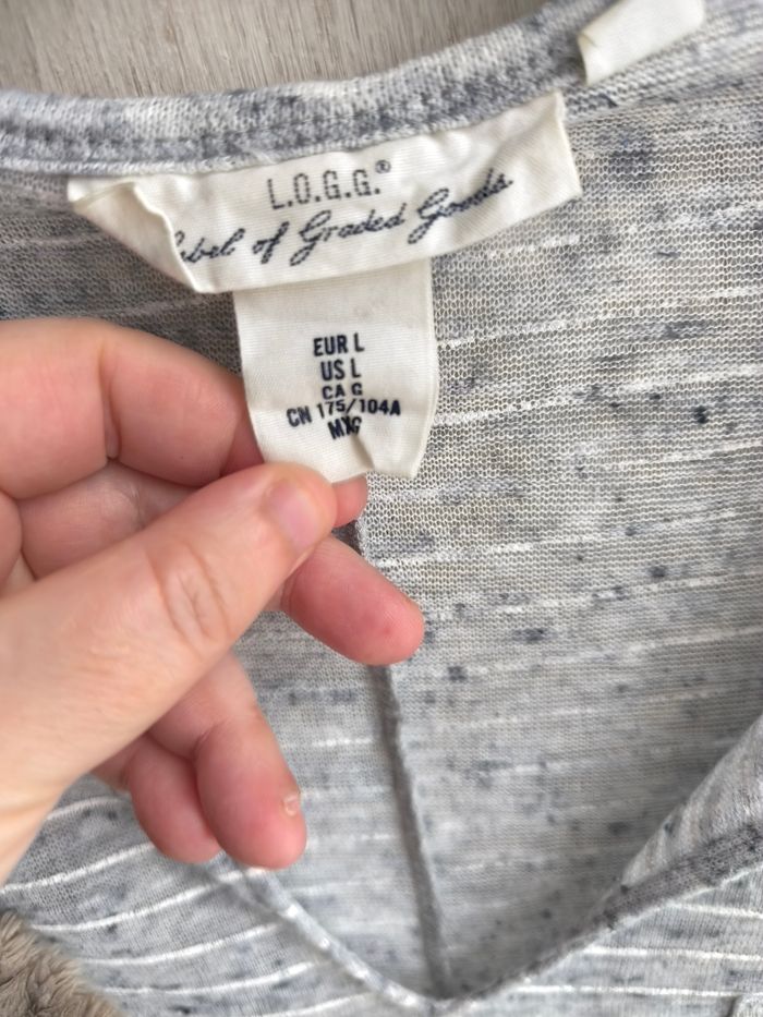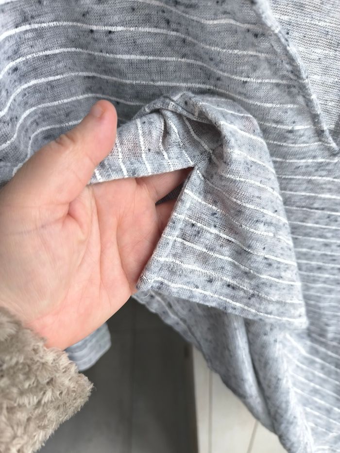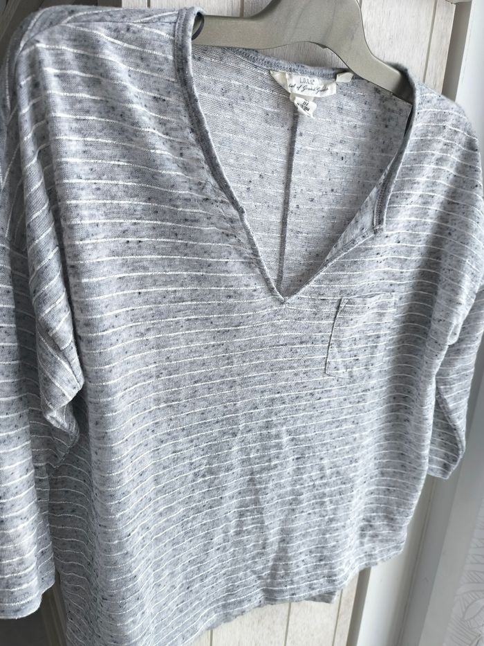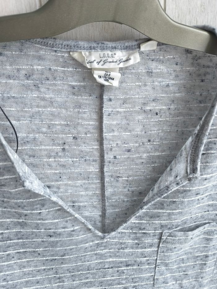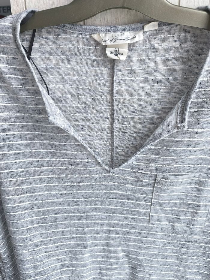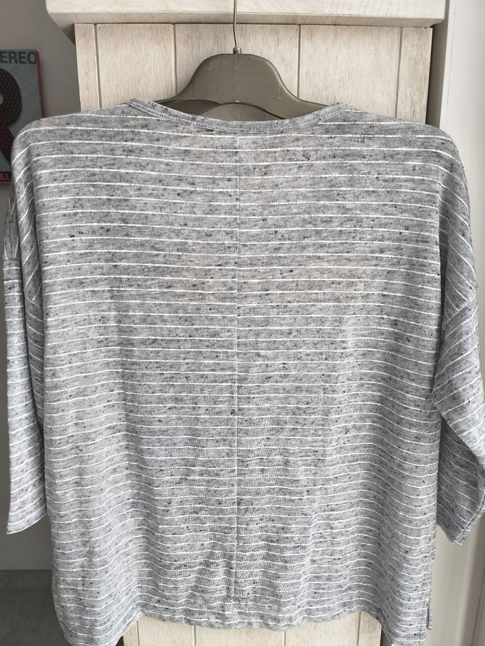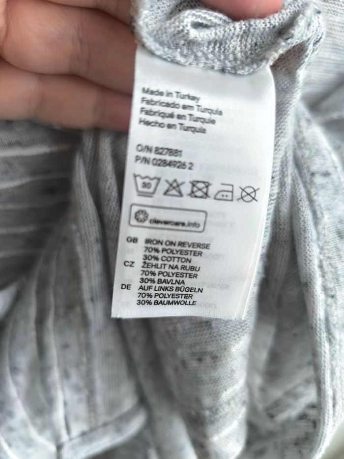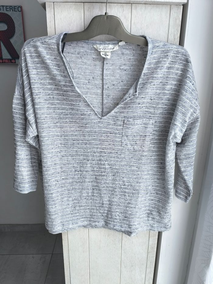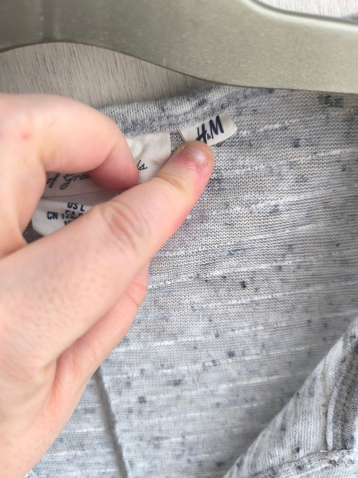 Marque:H&M Taille:L mensurations en photo Couleur: Gris clair moucheté et blanc Matière: Voir photo État:Bon état Petite fente sur le côté,fin,légèrement transparent,poche avant