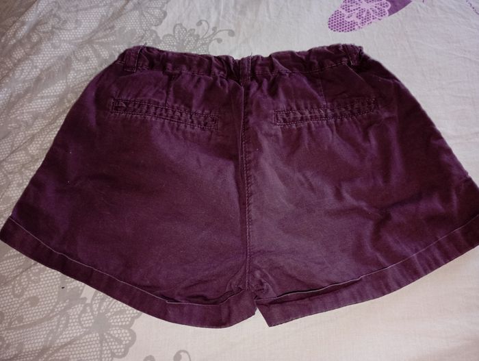 Short 12 ans fille très bon état 2 poches devant , petit noeud pour cacher le bouton, élastique intérieur taille ajustable marque sergent major La couleur est violet lie de vin je crois