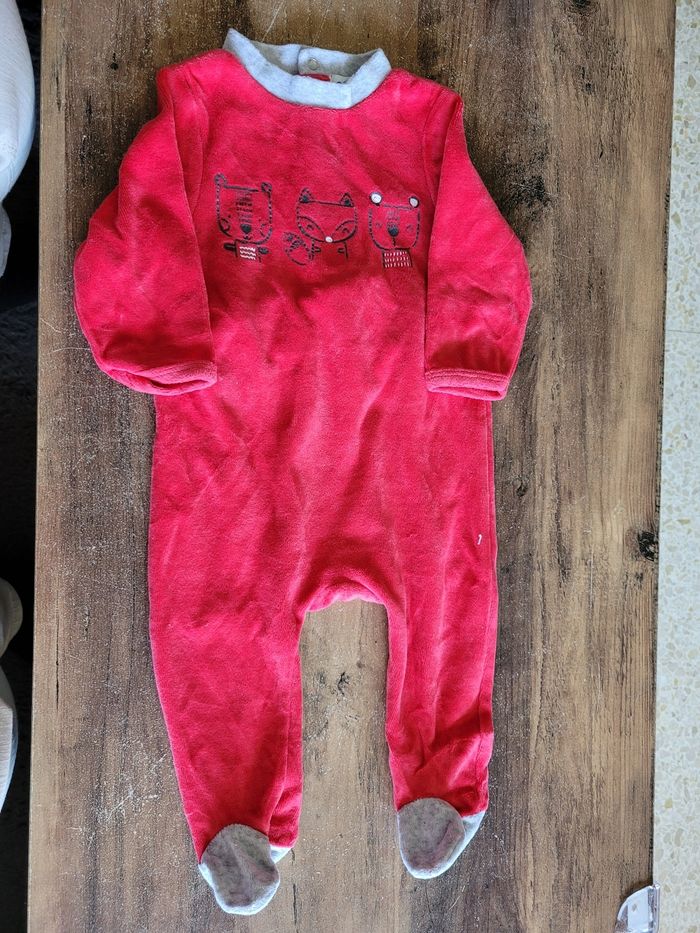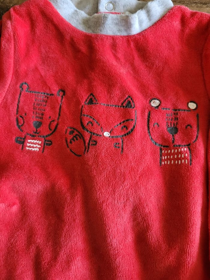 Petit pyjama Couleur rouge et gris Taille 6 mois Mi saison Attaché derrière Matière 75% coton 25% polyester Mixte