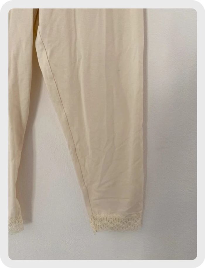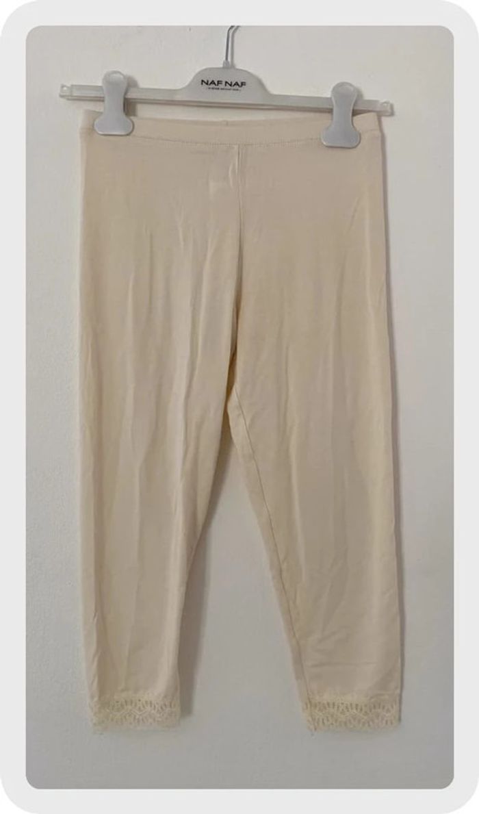 Legging de marque Morgan. Longueur Pantacourt, dentelles au bas. Couleur beige. Taille 36 convient à un 38. Parfait état. 🌸Réduction sur les lots activée, n’hésitez pas à visiter mon dressing. #ktl06taille36 #ktl06taille38 #femme36 #femme38
