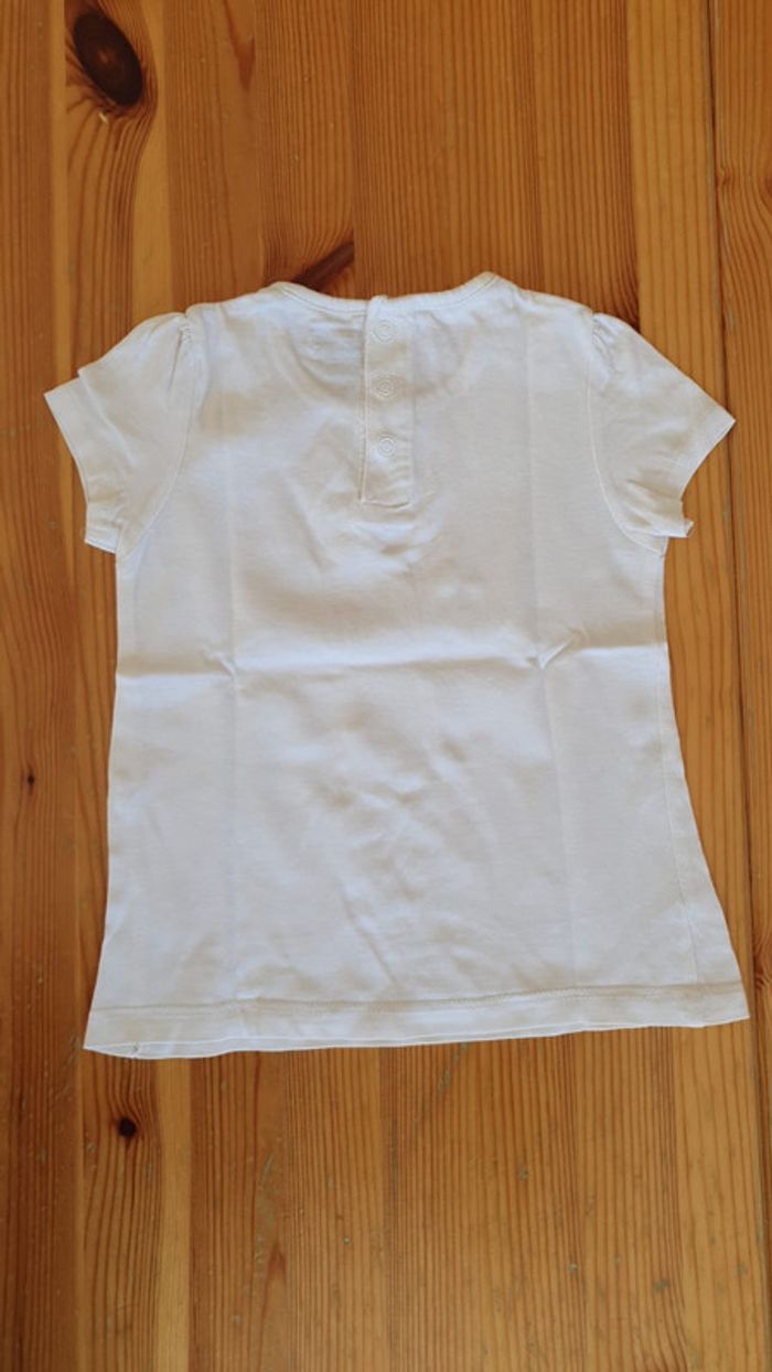 Tee-shirt manches courtes avec 3 boutons pression dans le dos. Petit noeud en tule sur le devant. En parfait état #vetementsbebetitine40