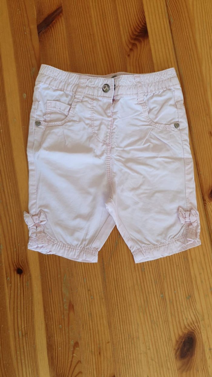 Pantacourt rose pâle en tissu très léger. Échancré sur le mollet avec un petit noeud, vraies poches, élastique à la taille. En parfait état #vetementsbebetitine40