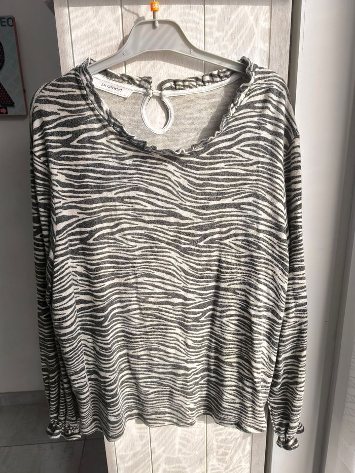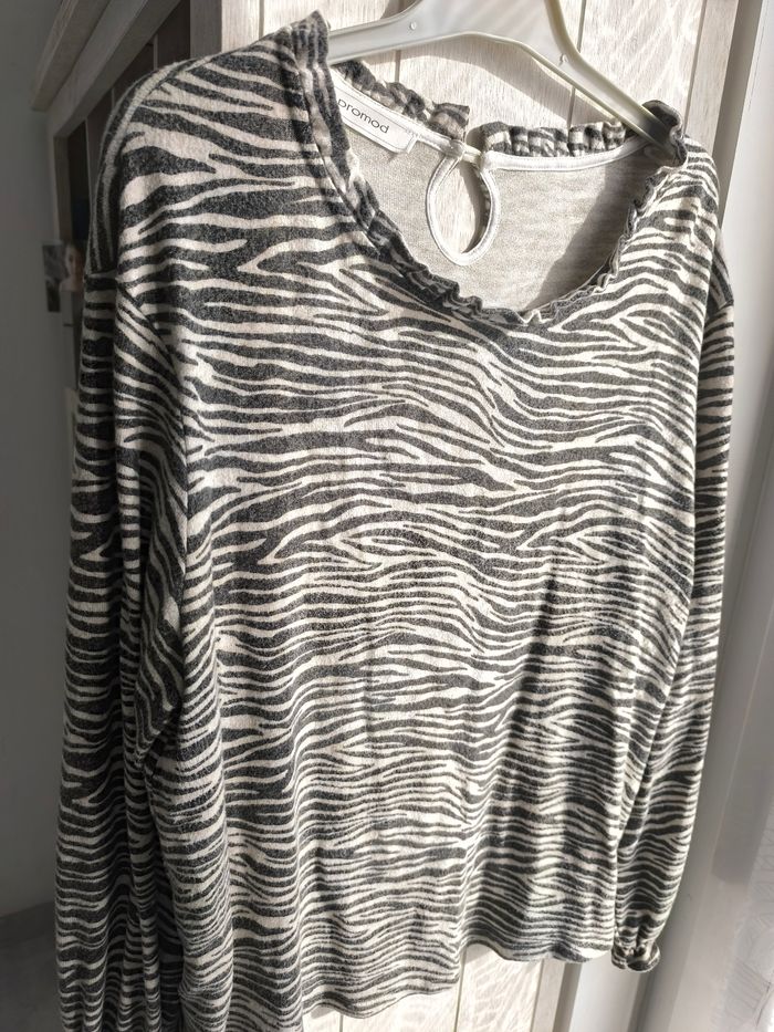 Marque:Promod Taille:XL mensurations en photo Couleur: Gris/blanc Matière: Voir photo État: Très bon état très peu porté Manches et col élastique