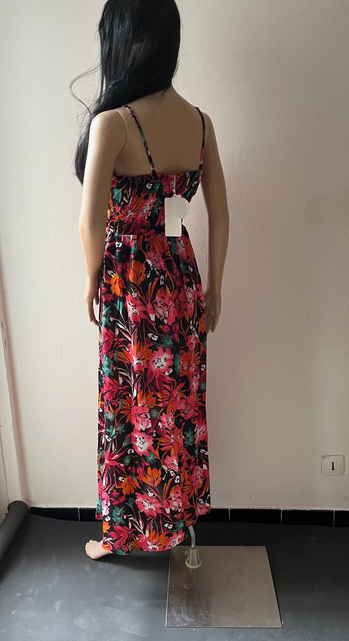 Robe longue fleurie noire et rose bretelles ajustables - photo numéro 2
