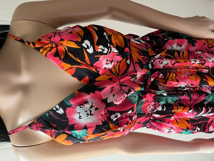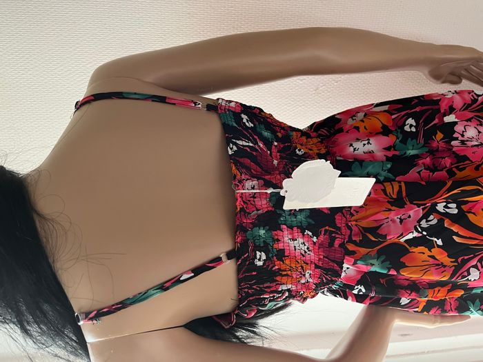 Robe longue fleurie noire et rose bretelles ajustables - photo numéro 3