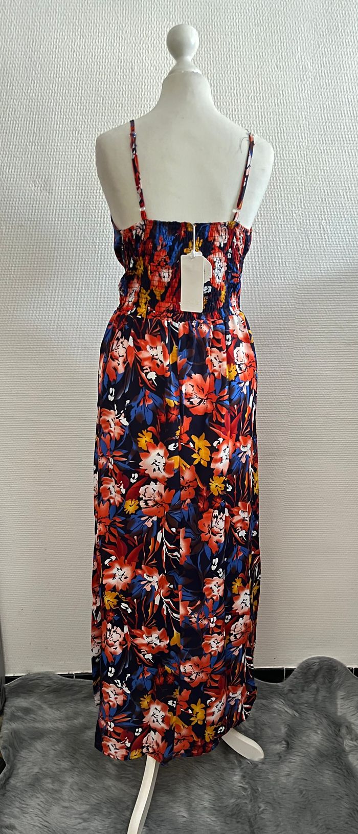 Robe longue fleurie bleue marine et rouge bretelles ajustables - photo numéro 4