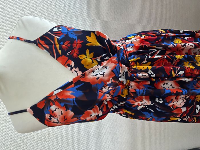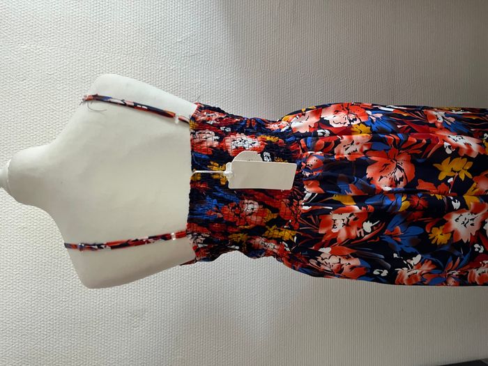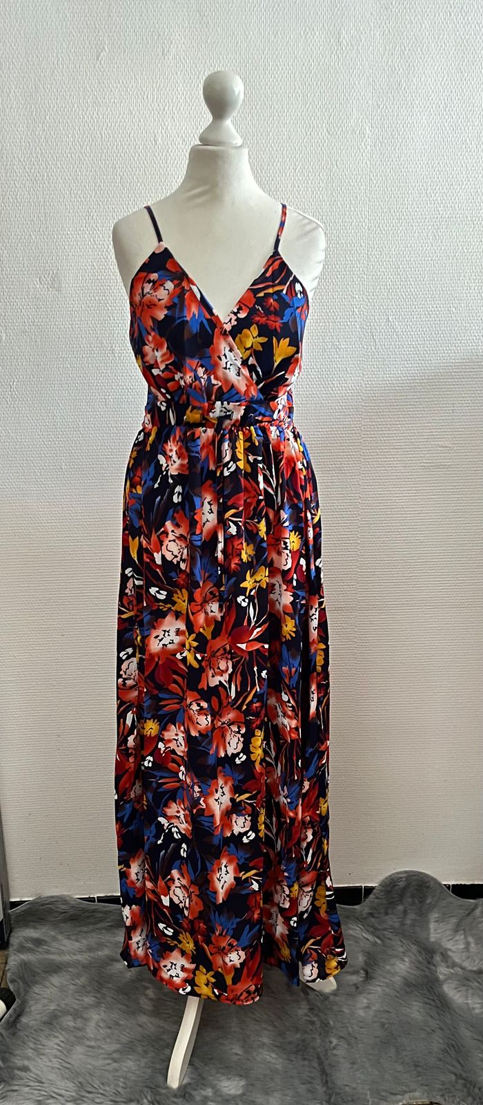 Robe longue fleurie bleue marine et rouge bretelles ajustables - photo numéro 2
