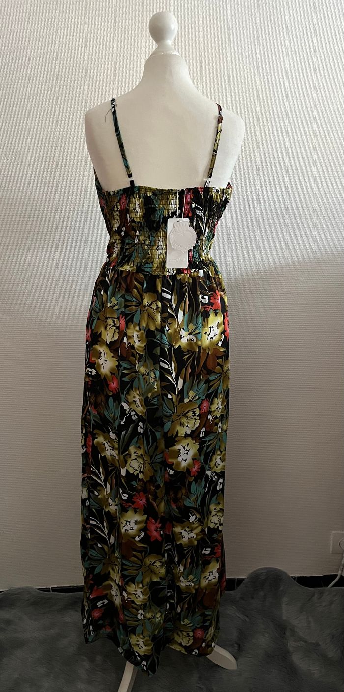 Robe longue fleurie noire et vert bretelles ajustables - photo numéro 2