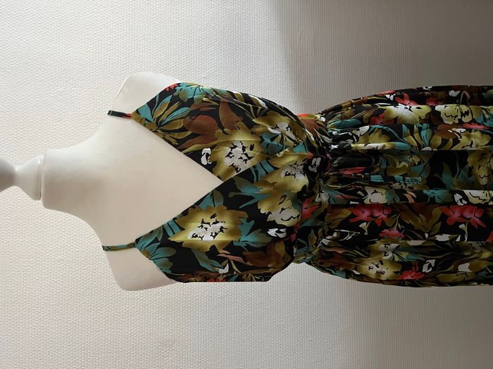 Robe longue fleurie noire et vert bretelles ajustables - photo numéro 4