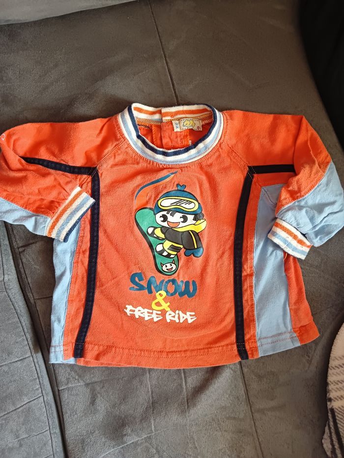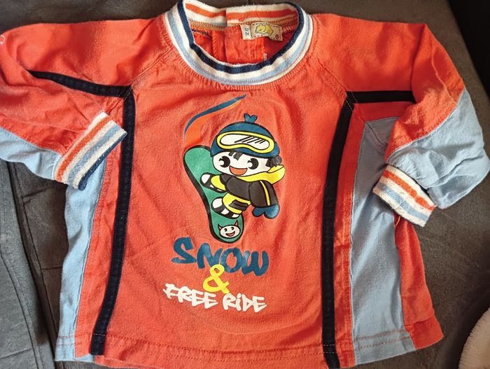 💐Joli petit haut garçon manches longues. Taille 12 mois . En très bon état. 100% coton *Dessin " snowboard"