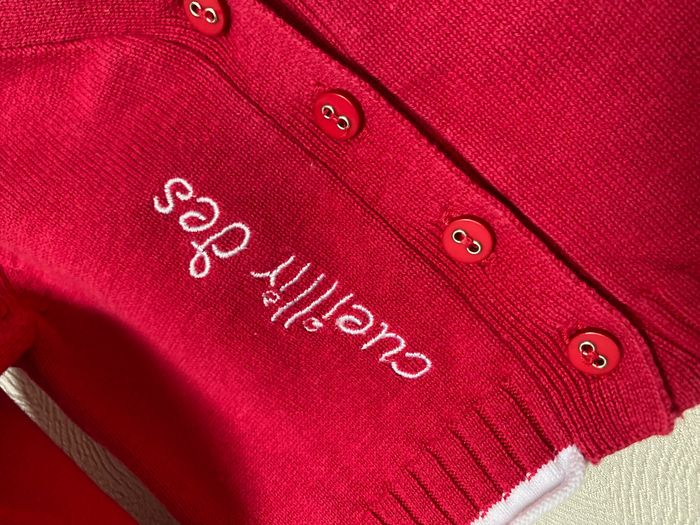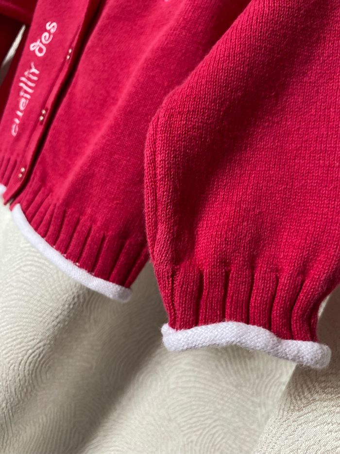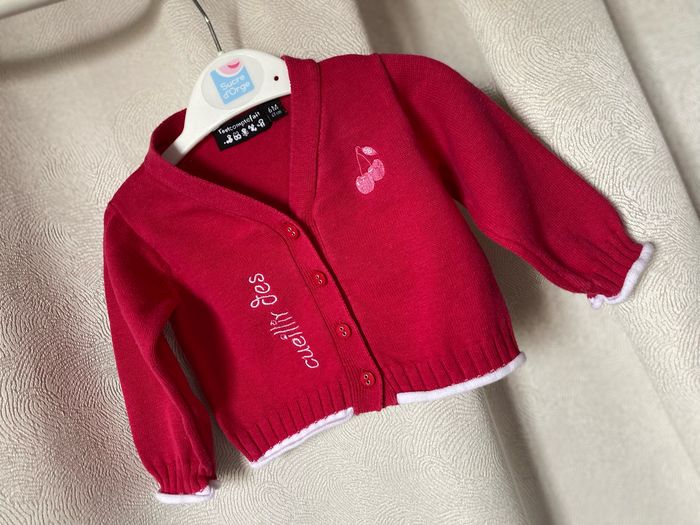 Gilet framboise bordures blanches cueillir des cerises brodé 100% coton Taille 6 mois 67 cm tout compte fait