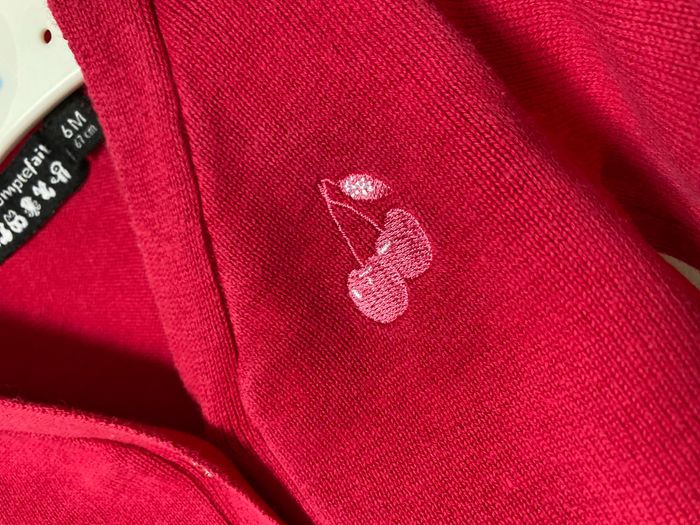 Gilet framboise cueillir des cerises brodé 6 mois tout compte fait - photo numéro 6