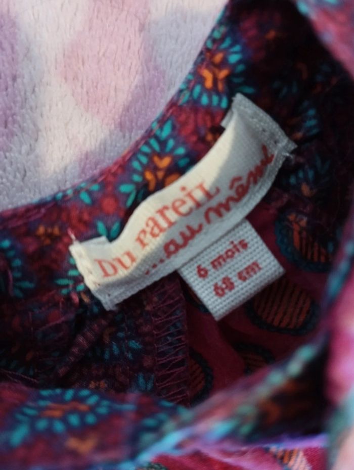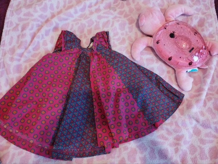 Taille 6 mois. Parfait état . Elle est ample. J ai une deuxième robe comme ça mais d une autre couleur ! regardez dans mon dressing.