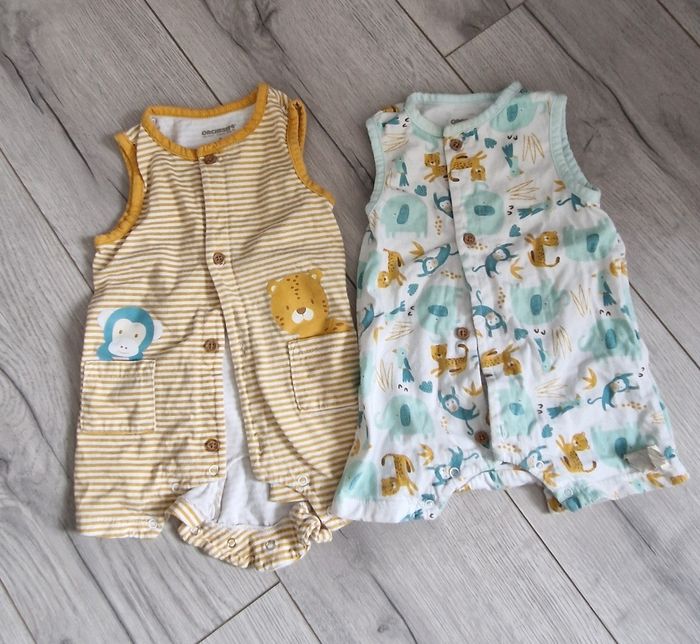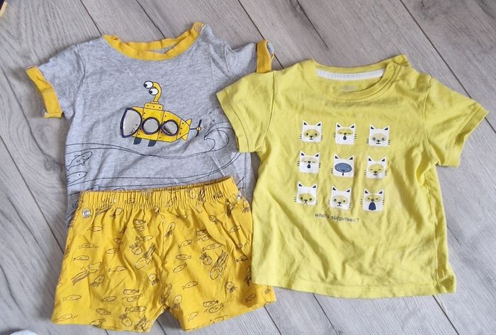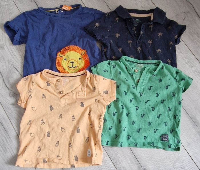 2 combinaisons (orchestra) 4 Tee shirts (kiabi) Un ensemble tee shirt short (mots d'enfants ) Tee shirt jaune (obaidi) 2 salopettes ( terre de marins et orchestra) 11 euros le lot complet ou en individuel peu importe au minimum 2 articles Pas d'envoi