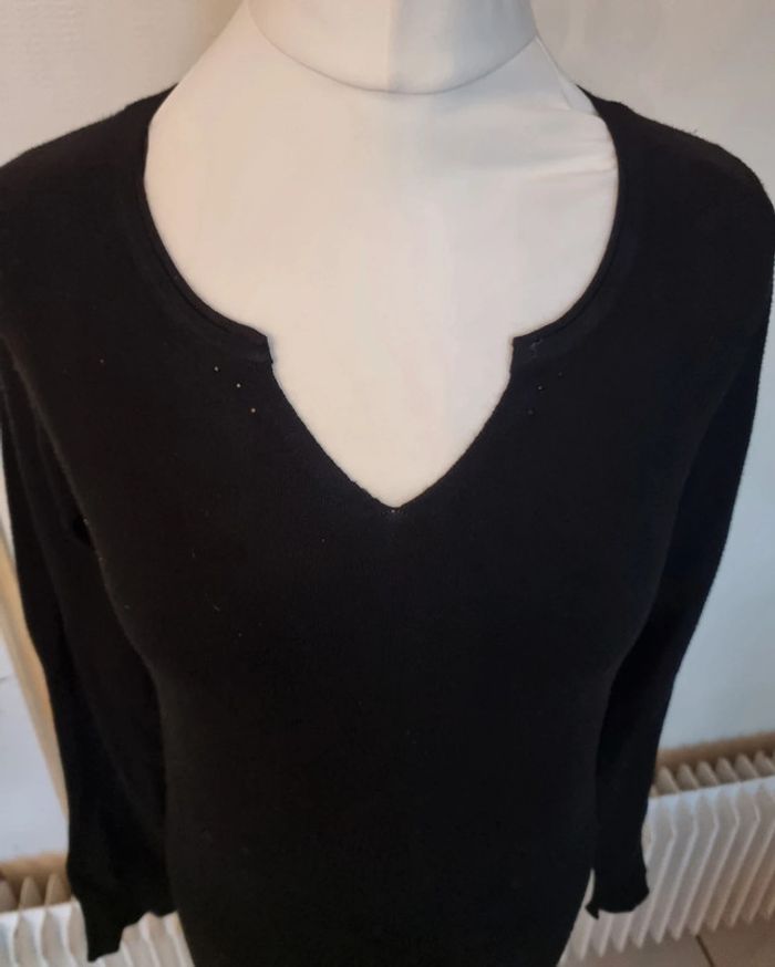 Pull col V noir Camaïeu neuf - photo numéro 3